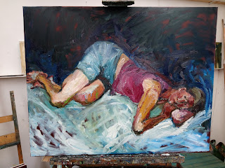I had planned to work with Blue before lockdown as I said in my last post. Anyway a few weeks ago, she came and modelled for me in the studio...at a distance of course, and that work is ongoing. We explore what we are thinking, what we see...our response to the situation... And I am trying to move my work on from what I did before lockdown... the figure displaces the world around, it breathes and moves, this is not a look at a specific woman, here the figure is just a person. Also, my work with a model helps my work from photographs.